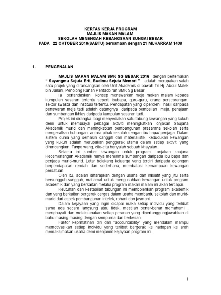 Pengenalan kertas kerja majlis makan malam. Malah beliau juga pernah dipilih menjadi pembentang kertas kerja kewangan sekolah di institut. KERTAS KERJA PERKHEMAHAN UNIT BERUNIFORM. MAJLIS SEMARAK KASIH SEHATI SEJIWA.