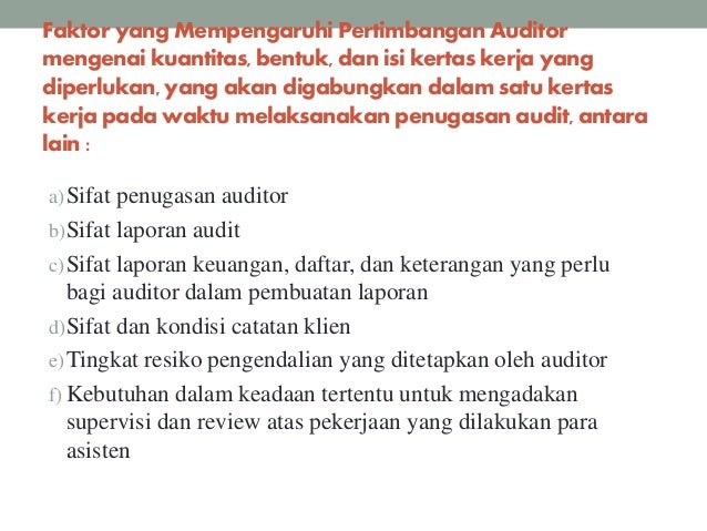 Namun demikian ada tujuh tipe kertas kerja audit yang biasanya dikenal yaitu. Pengertian Audit merupakan sebuah proses sistematis untuk mendapatkan dan mengevaluasi bukti kejadian ekonomi secara objektif mengenai kebijakan serta aktivitas ekonomi untuk menentukan tingkat kecocokankesesuaian antara pernyataan dengan kriteria yang telah ditetapkan dan menyampaikan hasilnya kepada pihak yang berkepentingan. Dalam mengumpulkan dan membuat bukti auditor perlu membuat kertas kerja audit.